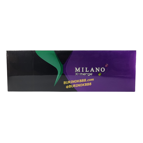 ยี่ห้อ  Milano X Mergeประเภท บุหรี่เย็น,ผลไม้ กลิ่นบลูเบอร์รี่ มี 2 เม็ดบีบขนาด King sizeNicotin 0.4mgTar 4mgจากประเทศ UAE1 คอต 10 ซอง1 ซอง 20 มวนบุหรี่เย็น,ผลไม้ 2 เม็ดบีบ หอมกลิ่นบลูเบอร์รี่และมิ้นต์ ใบยาแน่นๆเกรดพรีเมี่ยม ขนาดมวนปกติ นำเข้าจากประเทศอาหรับฟิลตอนสูบ : ตัวนี้เป็นบุหรี่เย็นที่หอมบลูเบอร์รี่ตะโกนมากกกก และเย็นแบบสุดๆ บีบทั้ง 2 เม็ดให้แตกจะเข้าใจเลย ทั้งความหอมและความเย็นตะโกนเข้ามาในคอสุดๆด้วยความแรงระดับพอดีทำให้สูบเพลินมากๆ